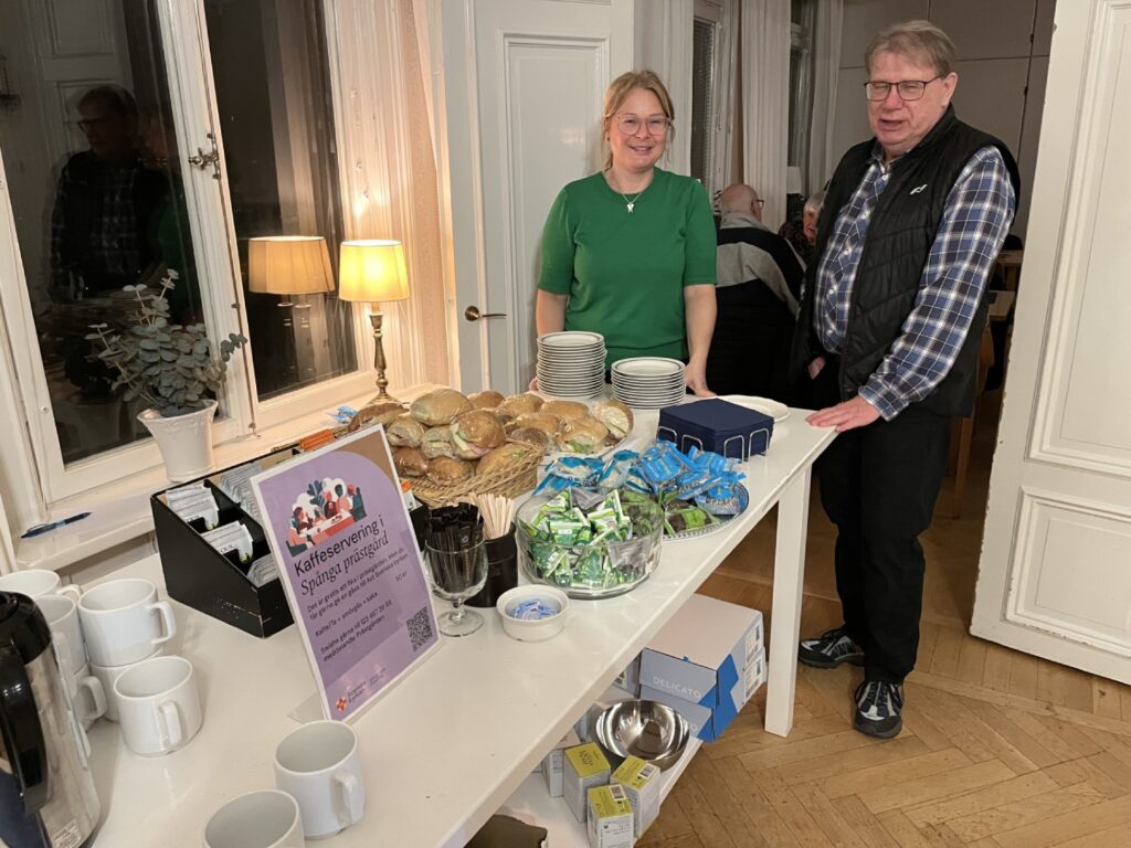 – Det har stundtals varit väldigt många besökare i caféet idag. Ibland har det inte funnits sittplatser för alla och kön har ringlat lång, berättade Hedvig och Leif som hade hand om serveringen.