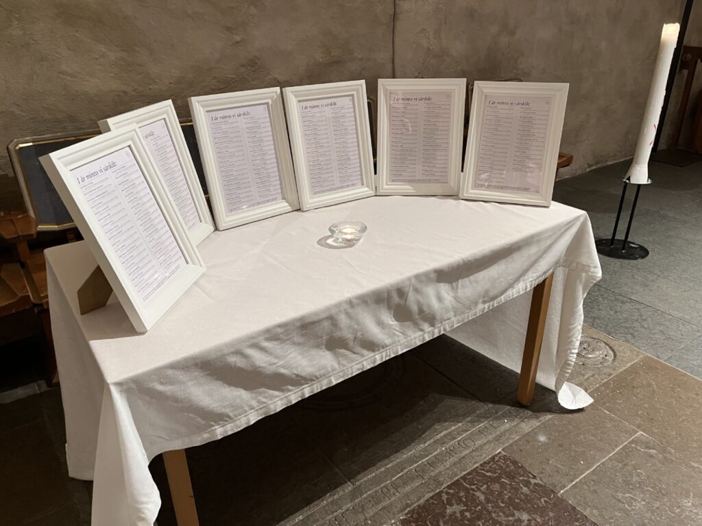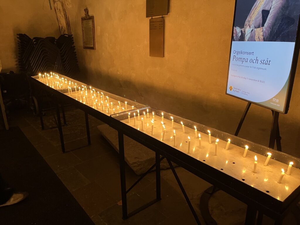 En del passade på att gå in i kyrkan. Det fanns möjlighet att tända ljus och se minnestavlor över personer som vi minns särskilt i år.