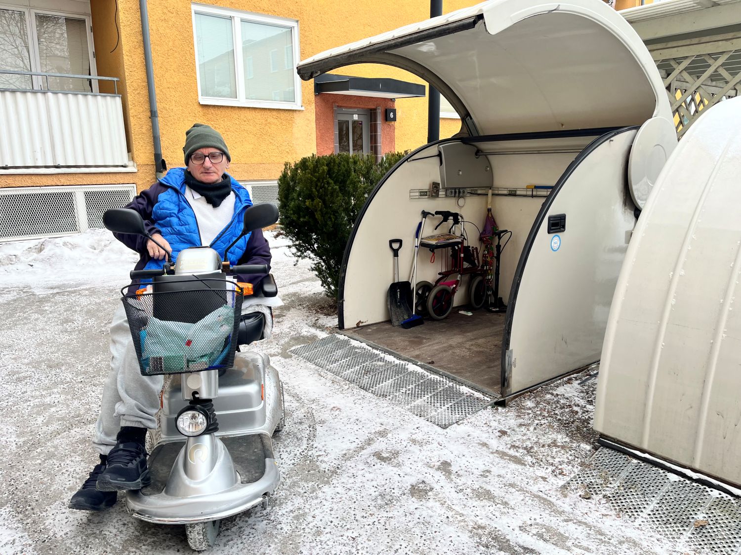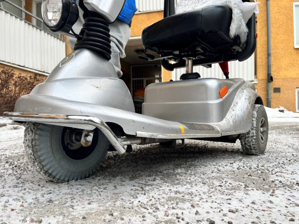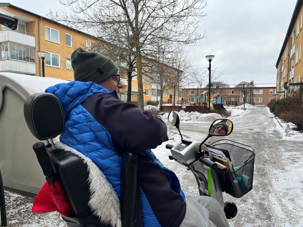 När Nyhetsbyrån Järva möter upp med Avram på Visbyringen visar han hur scootern nu fungerar som vanligt, men att han är försiktig att bege sig ut i det isiga vädret med saltade vägar.