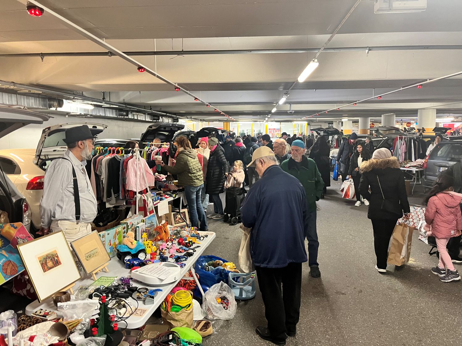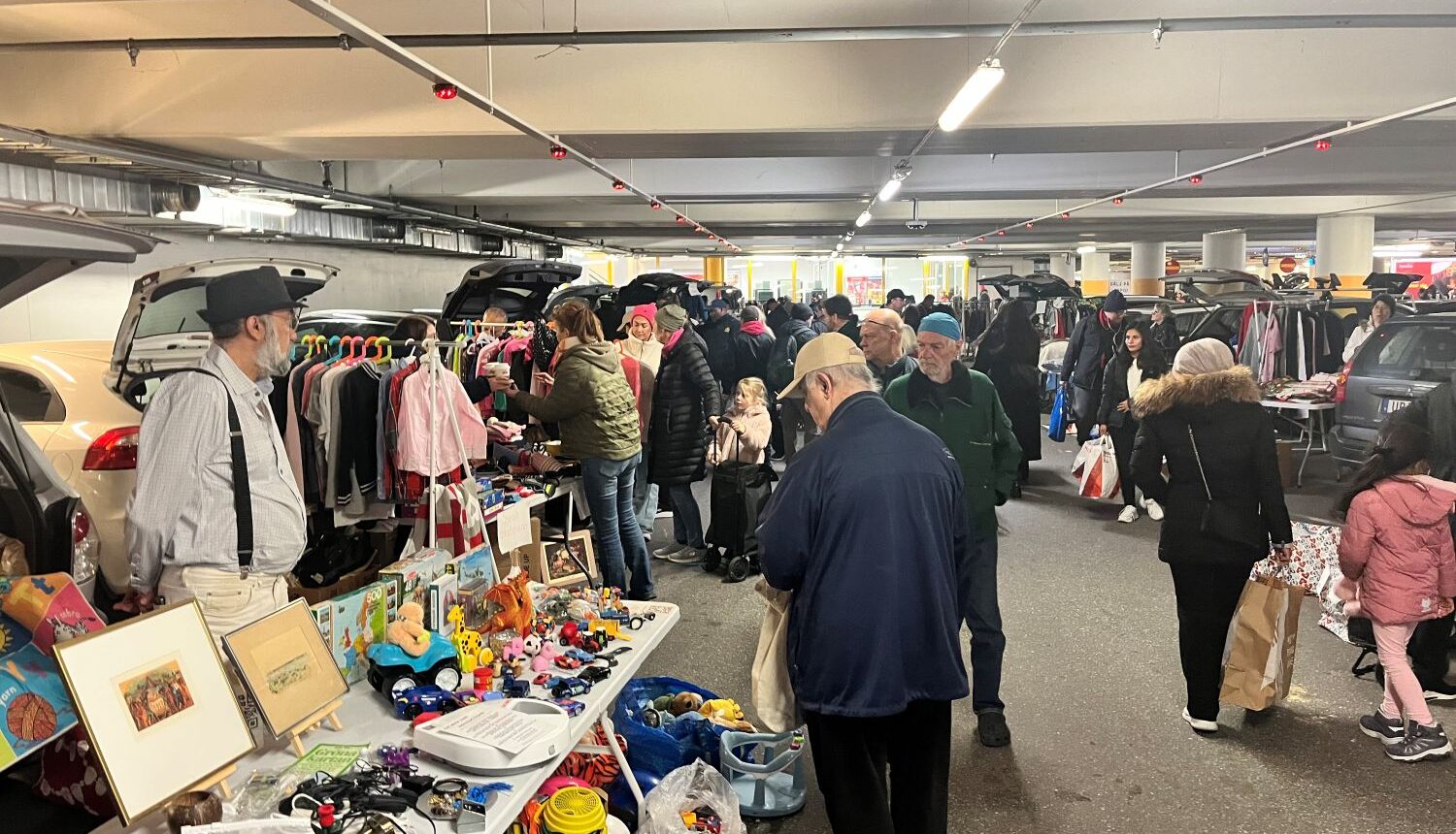 115 registrerade försäljare och hundratals besökare har flockats till garaget under Kista galleria för dagens bakluckeloppis.