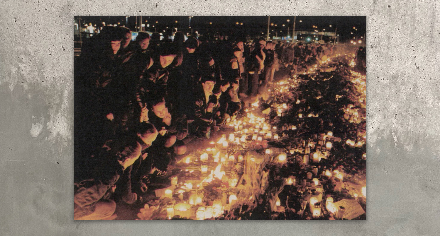 Ensam och svartklädd anlände jag till Scandinavium. Det var inte många som kände igen mig. Jag hade magrat och klippt av mig mitt långa hår. Kindknotorna stack ut, byxorna hängde löst och det korta håret spretade trotsigt åt alla håll. De anhöriga omslöt mig i sin sorg. Om och om igen berättade de om den infernaliska natten. Mammor grät som små barn i min famn och smekte sina barns fotografier. Jag fann inga ord för att uttrycka min sorg och mitt medlidande. Istället grät jag tillsammans med dem. På scenen lyckades jag samla mig någorlunda. Så fort jag kände den välbekanta klumpen i halsen tog jag en paus, svalde och fortsatte. Varje gång jag lämnade scenen grät jag en skvätt för att sen återigen verka stark. Det var en värdig minnesstund med tiotusen människor som förenades i tyst förtvivlan och frustration med tända ljus i ett mörklagt Scandinavium. Från den upplysta scenen hörde jag barns tröstlösa snyftningar och föräldrarnas smärta.