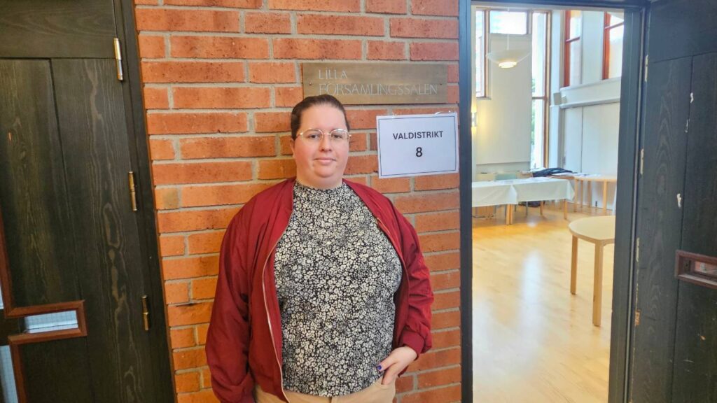 För Tonja Preusler, 32, är det första gången hon röstar i Kista. Tidigare har hon varit bosatt i Umeå och röstat där och jämfört med i Umeå tycker hon att det är många fler som röstar idag i Kista.