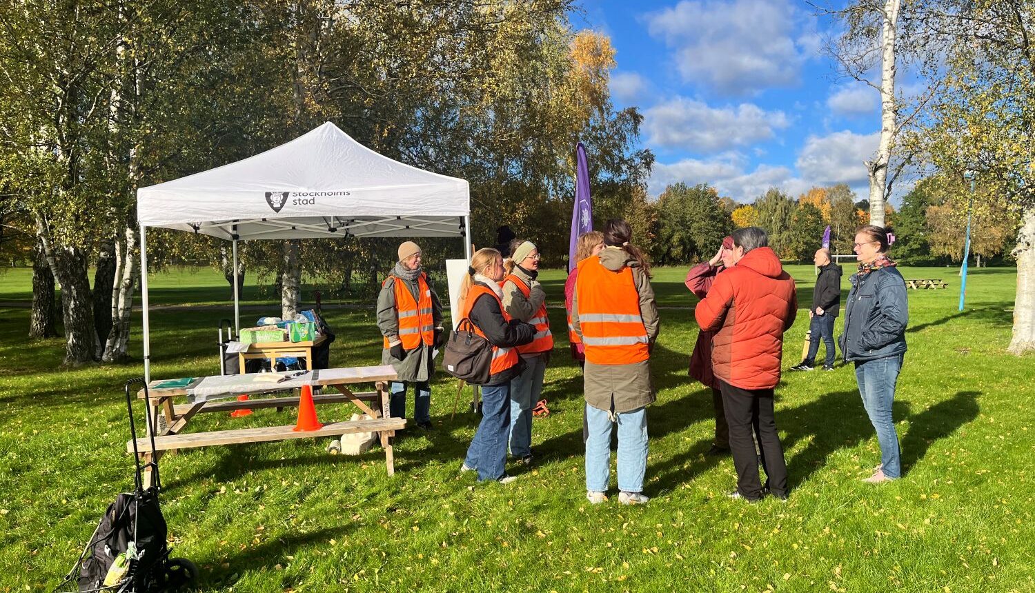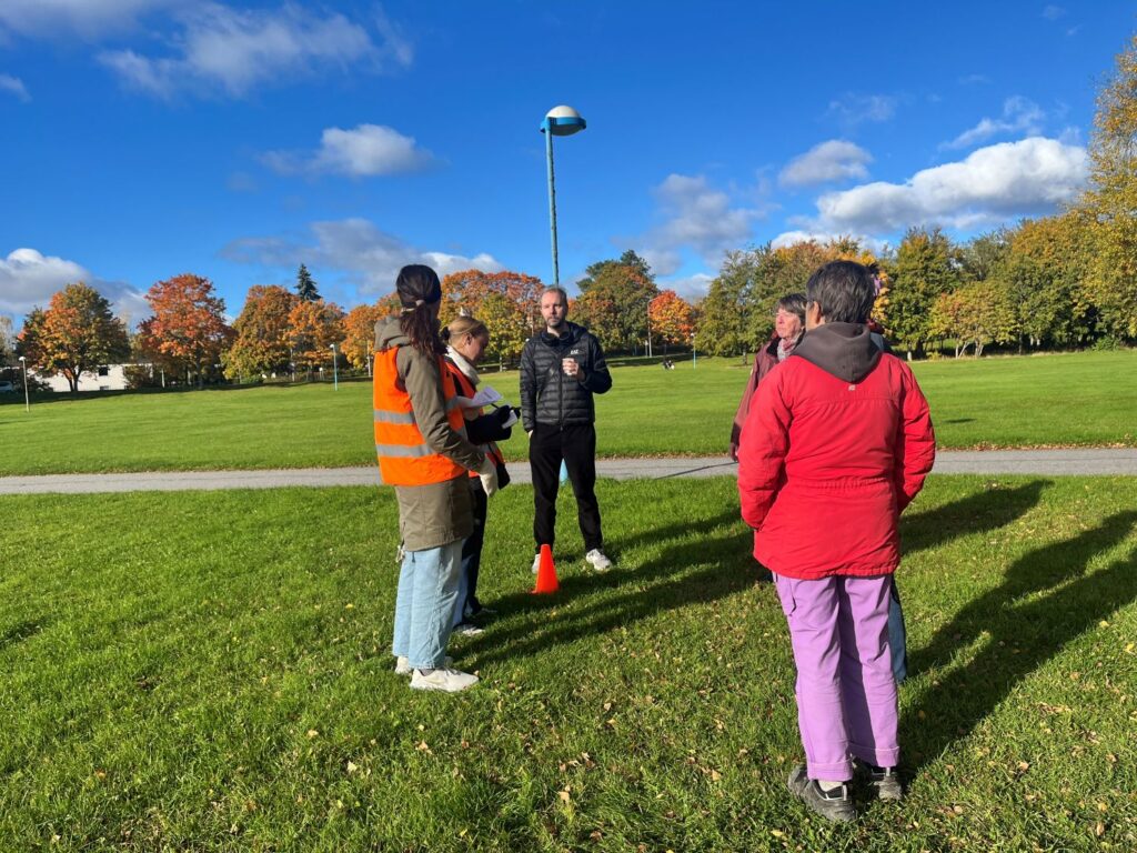 Omkring 30 personer i olika åldrar, främst från Rinkeby och Tensta, trotsade de kyliga vindarna för att delta i dialogpromenaden om stadens planerade temalekpark i Södra Järva.
