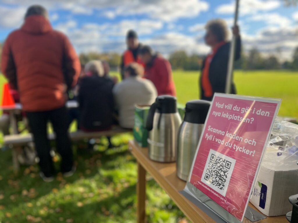 Deltagarna i dialogpromenaden på söndagseftermiddagen fick gå i smågrupper ledda av personal från exploateringskontoret och de landskapsarkitekter som anlitats från AJ Landskap AB. Vid sju olika koner runt området fick de svara på frågor om hur platsen används, vad som är dåligt och hur de önskar att en eventuell temalekplats kunde se ut.