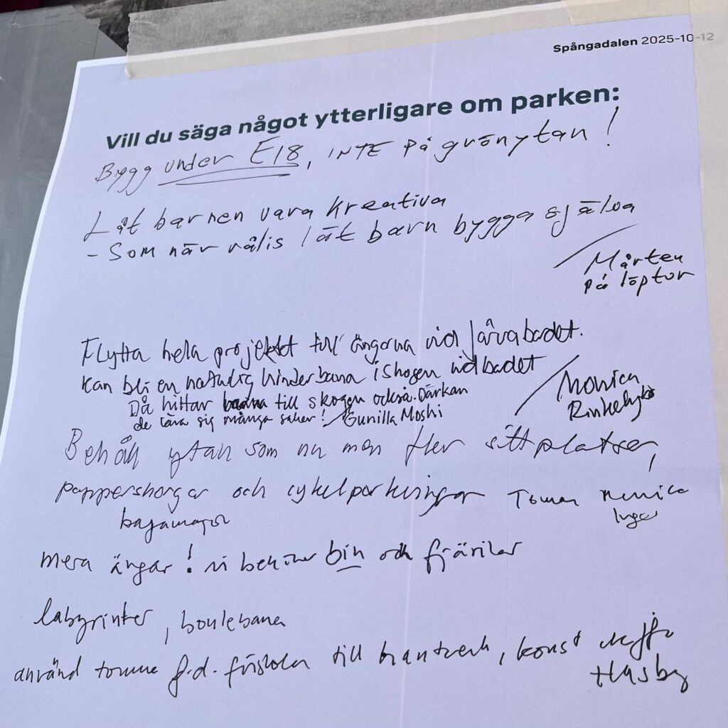 Vad deltagarna tyckte var dåligt var mer det logistiska. Det är långt från kollektivtrafiken och parkeringar i närheten. Cricketlagen brukar ha svårt att få plats vid Spånga kyrka när de har match. Samtidigt är det inte aktuellt med nya p-platser, försäkrade landskapsarkitekterna. På sina håll består marken dessutom av 20 meters lera. Området har skyfallsproblematik.