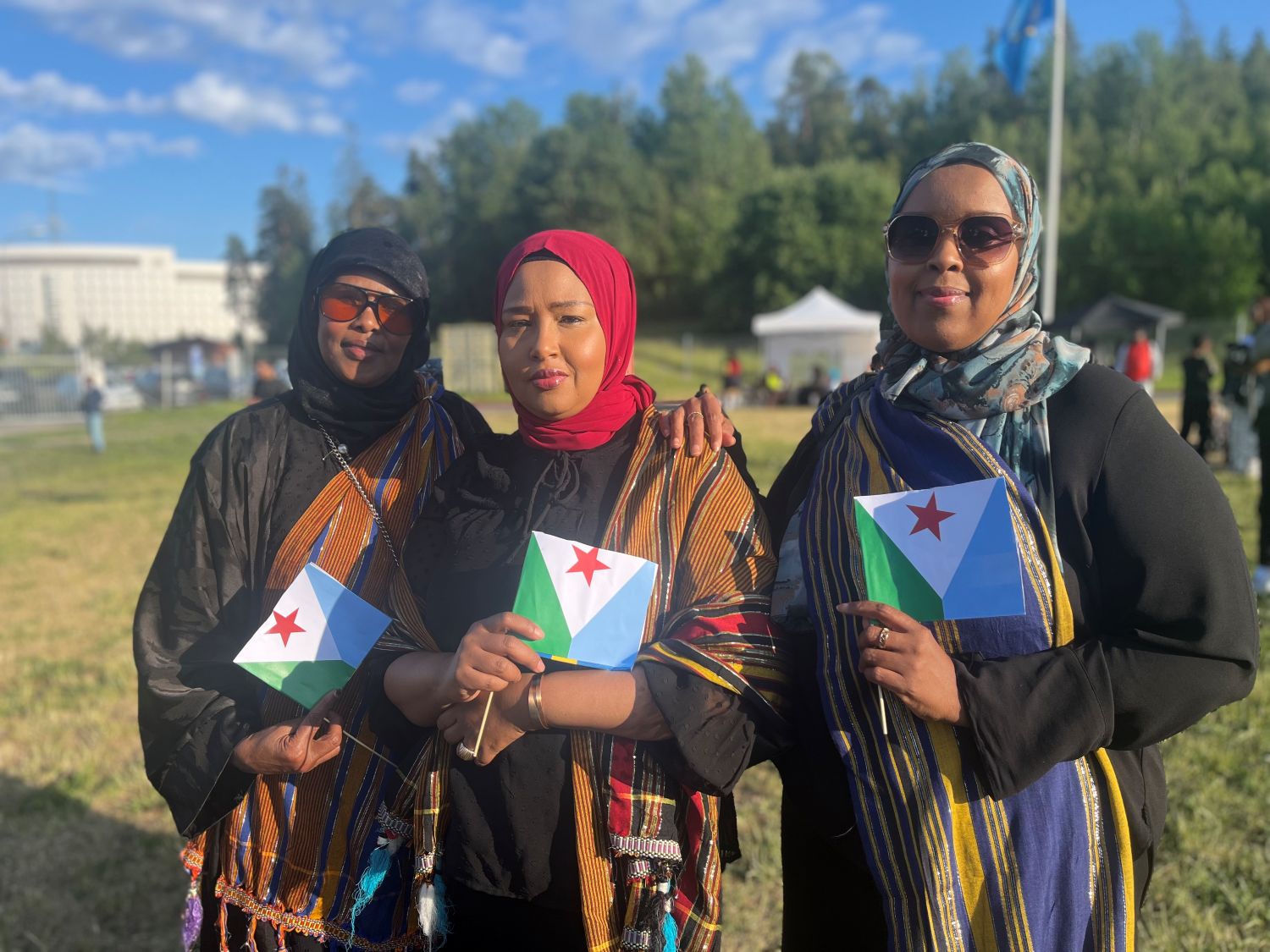 Jämfört med den soliga invigningen av den somaliska veckan, som hölls i torsdags framför tusentals personer på Spånga IP, var det inte många som trotsade den gråmulna kvällen på Djiboutis självständighetsdag. Men stämningen på Knutby BP var ändå god med musik från Östafrika i högtalarna, somalisk förtäring och ansiktsmålning vid olika stånd. Efter en stund sprack så solskenet igenom molnen.