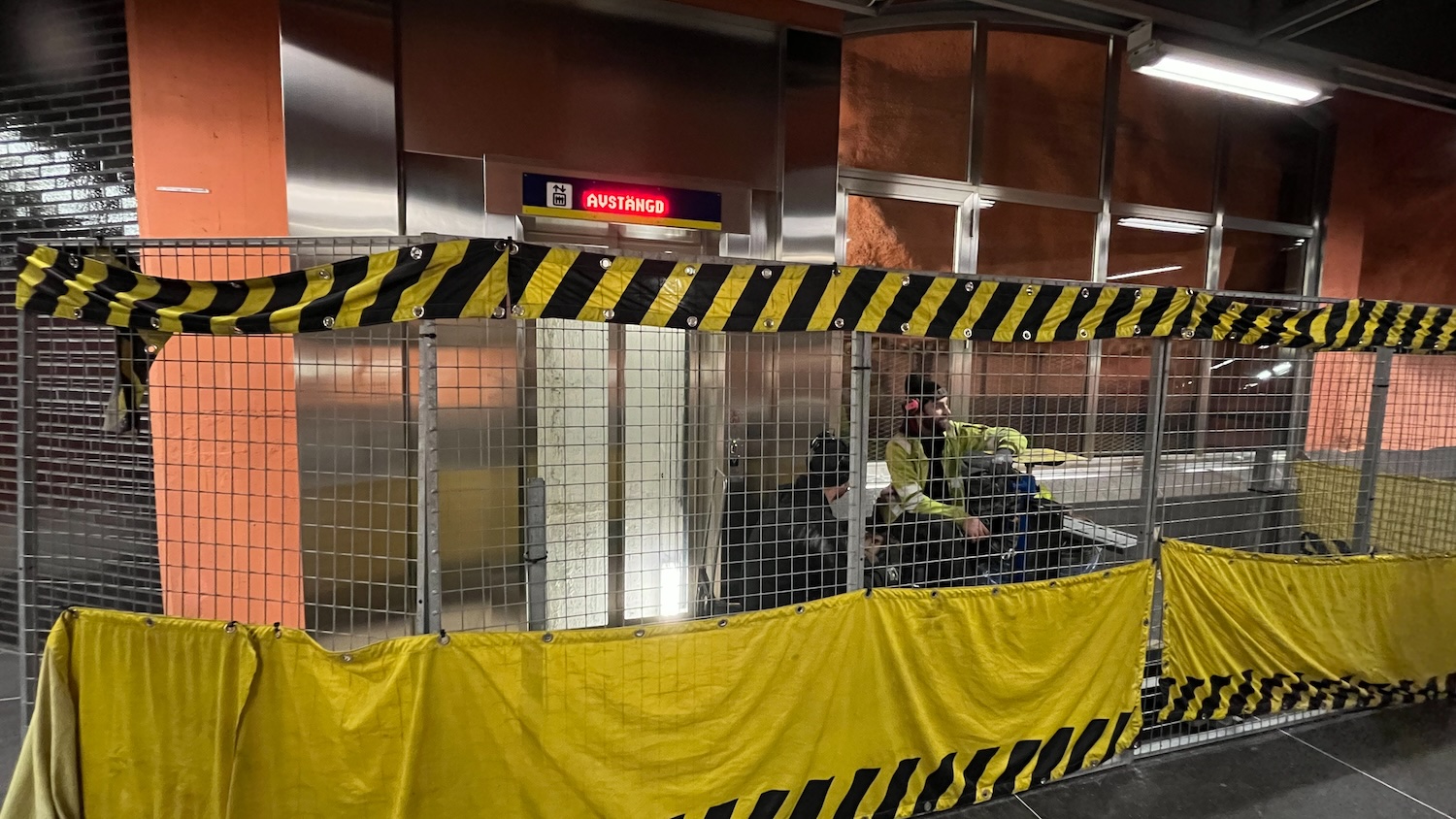 Redan på onsdagens morgon hade två reparatörer satt upp skyddsstängsel runt den ena hissen, och de lovade att sedan var det det andra hissens tur.