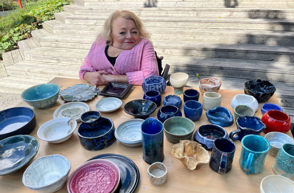 Medlemmarna i Husby- konst och hantverksförening hade vernissage för en ny utställning och sålde glaserad keramik utanför verkstaden. För de som hittat dit var dagen precis så bra som den kan vara.