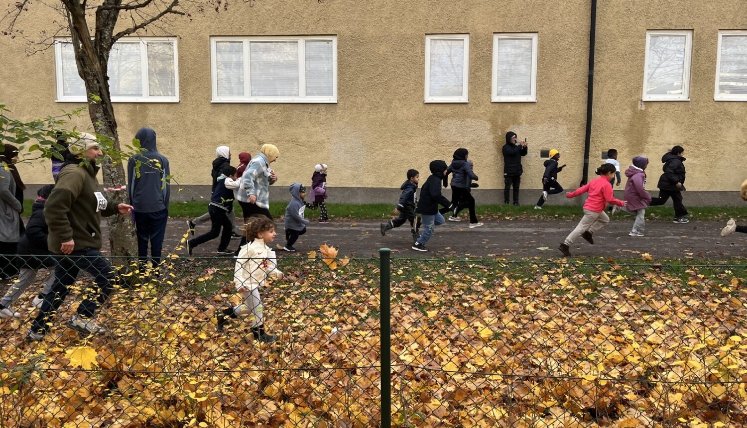 Strax därefter uppmanades alla deltagare att samlas vid startflaggorna. När visselpipan hördes blev det full fart direkt. Funktionärer var utplacerade utefter loppets sträckning för att peka ut vägen om någon skulle missa de markeringar som fanns. Loppet var en kilometer långt och det dröjde inte många minuter innan de första tävlande sågs efter gångvägen de sprang på.