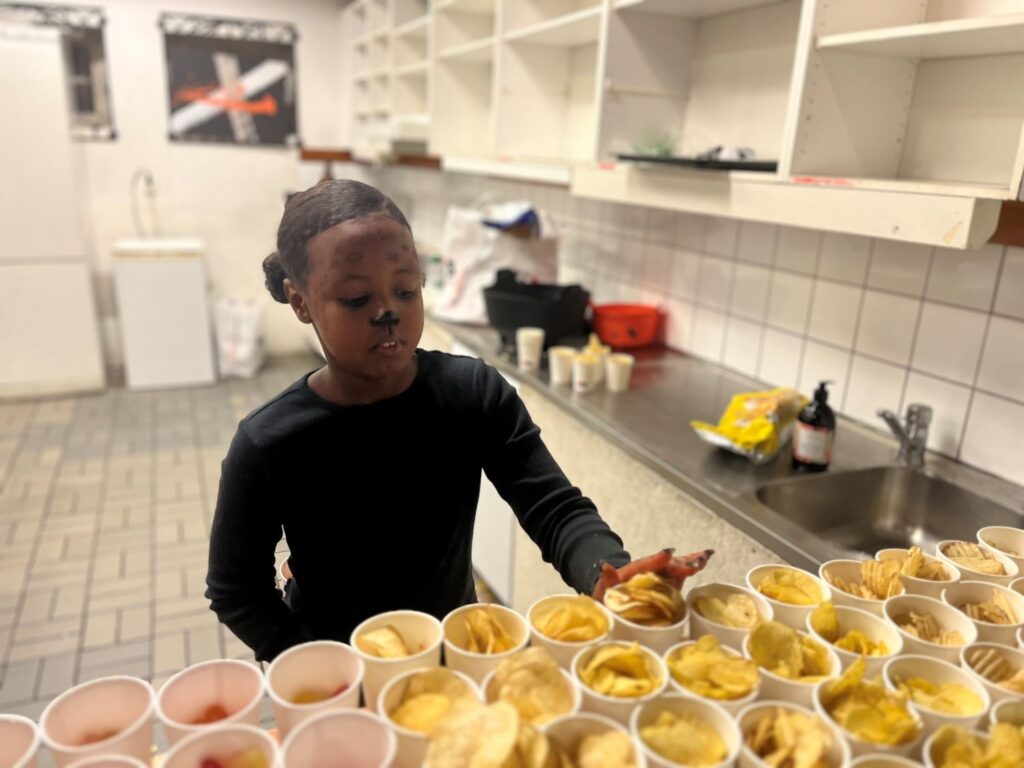 Förra året var det många besökare, likaså året dessförinnan, när Unga Örnars grupper i Järva bjöd in till halloweenfirande. Den här kvällen blir det musiktävling med dansstopp, snacks och tuttifruttibål med sliskigt gelégodis i. Många är utspökade på ett eller annat vis och några av de som organiserar och bidrar med serveringen för kvällen är Rayaan, Iqra, Hannah, Huda och Mikeal.