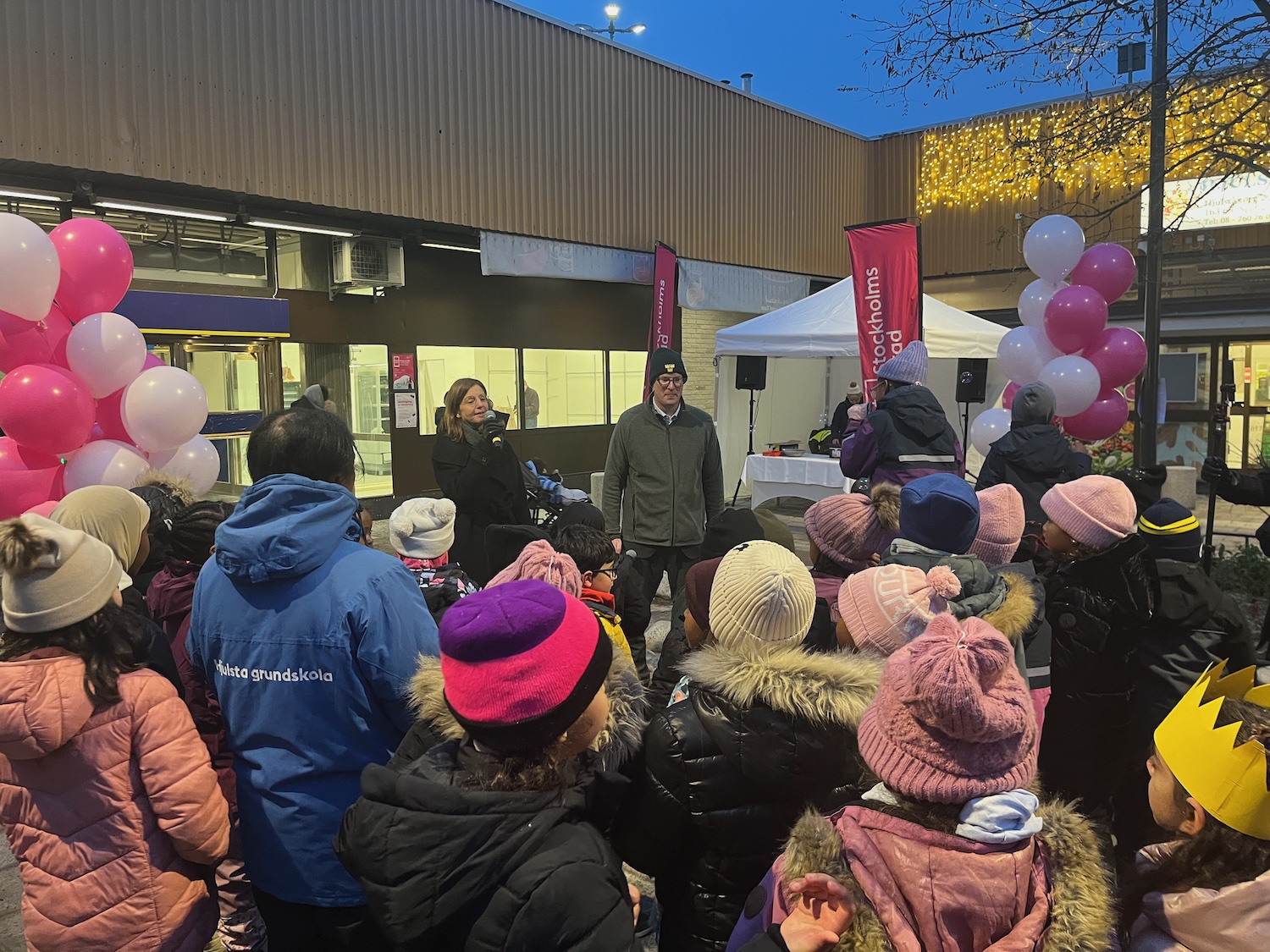 Med såpbubblor och ballonger återinvigdes Hjulsta torg igår. Gunilla Glantz från trafikkontoret hälsade alla välkomna och biträdande finansborgarrådet Anders Österberg (S) räknade ner tillsammans med alla barnen.