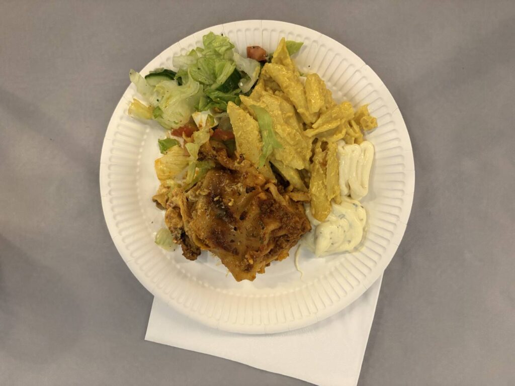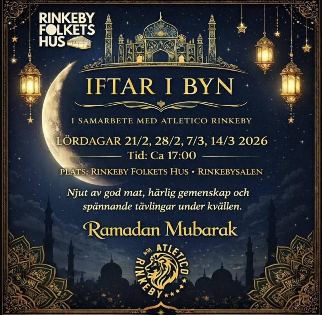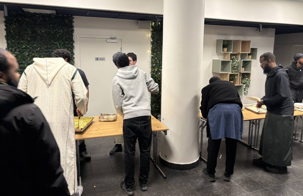 På lördagskvällen firades Iftar i Rinkebysalen som var till bredden fylld av övervägande unga killar. Det bjöds på lasagne och kyckling-currypasta, och det var rejäla lass som landade på tallrikarna.