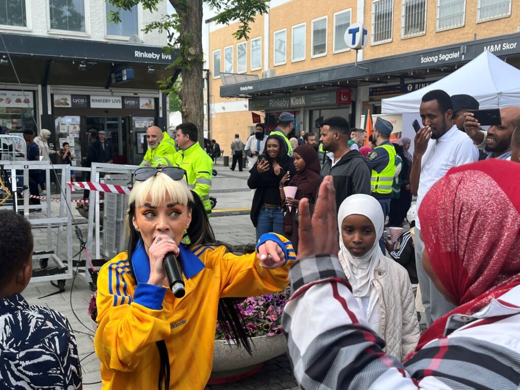Sedan blir det musik av den folkkära artisten Jasmine Kara från scen. Hon sjunger flera sånger på olika språk, och leder till och med allsång bland publiken på somaliska. Mer somaliskt blir det när Faadumina, en internationellt känd artist inom den somaliska communityn och Ayan Tromso, äntrar scenen efter Kara.