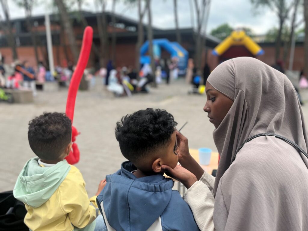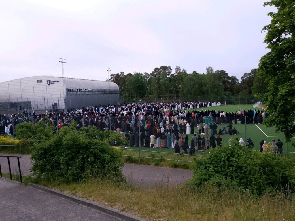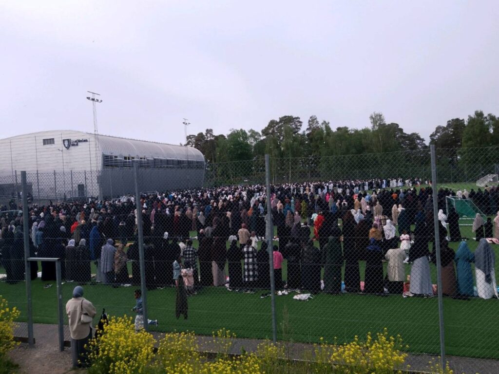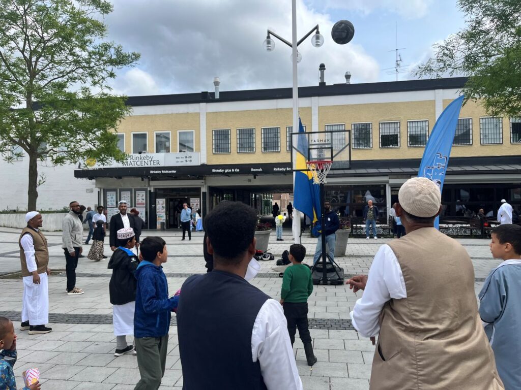På Rinkeby bollplan hölls morgonbönen redan klockan 07.30 och enligt uppgift fylldes planen åtminstone ett par gånger till därefter för bön. Under dagen har många träffat släkt och vänner för att fira hur Ibrahim/Abraham enligt traditionen var villig att offra sin förstfödde son Ismail som ett offer till Allah, men i sista stund inte behövde göra det.