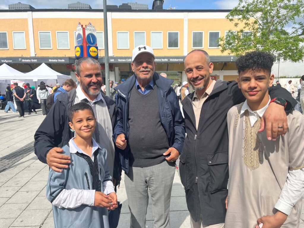 – Det här är den stora av eid-högtiderna, offerhögtiden, säger Tenstabon Ahmed som kommit dit med sin bror och deras söner, och pappa Said.