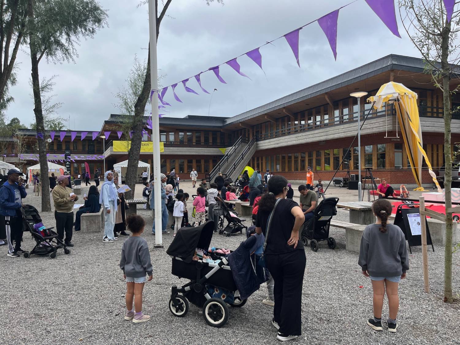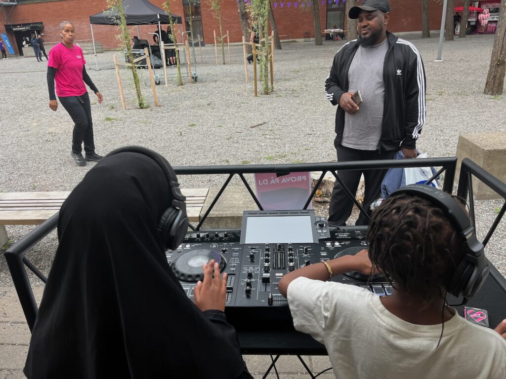 Mellan Tensta Träff och Tensta sporthall, framför Järva gymnasium och Tekniska museet, pågår en kulturfest just nu. Där finns workshops för serietecknare, dj-bås för dem som vill och sagoläsning med fiol. Senare ikväll kommer Imenella att uppträda.