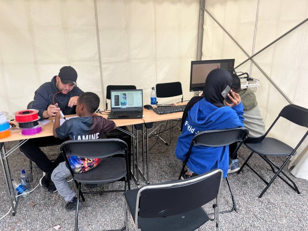 I ett tält finna Aktiv Järva, med Mårten Westberg, som sedan ett år tillbaka är anställd som fritidslots. Han tipsar barn och föräldrar om vad som finns att göra i Järva för barn och unga.