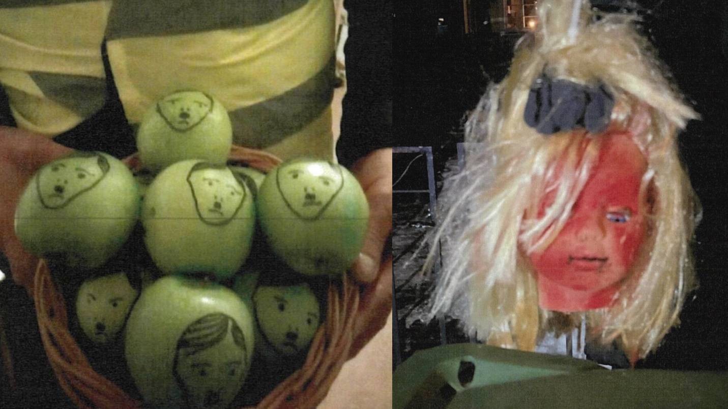 De två händelser som avses gäller dels att Rojavakommittéerna, som mannen är medlem i, lämnade en korg gröna äpplen, målade med Hitlerlika porträtt, utanför migrationsminister Johan Forssells (M) bostad. Och dels när en maskerad docka, enligt Rojavakommittéerna föreställande en IS-terrorist, med ett blodigt dockhuvud i handen placerades utanför biståndsminister Benjamin Dousas (M) bostad.