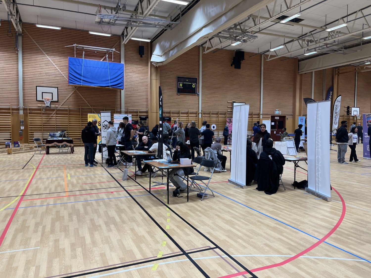 I den stora sporthallen var det fullt med utställare och besökare. Några barn var lite blyga i början men det lossnade när de såg hur roligt det kunde vara att prova en aktivitet.