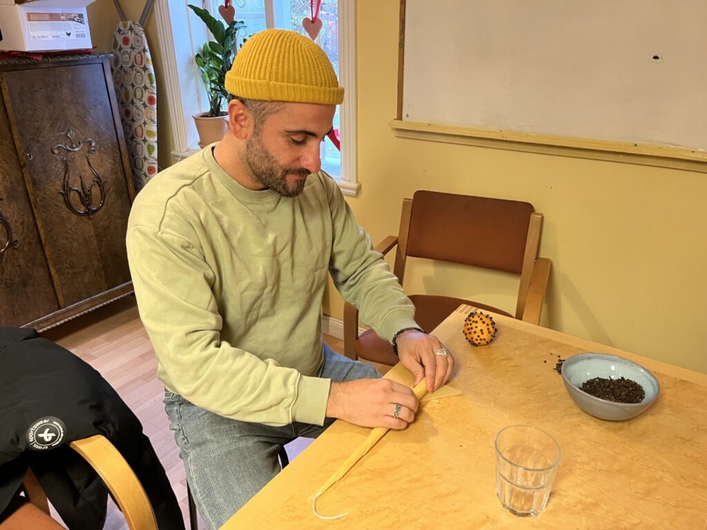 – Jag håller på att göra ljus av bivax. Det har jag aldrig gjort förut och det är roligt. Jag har gjort flera stycken nu och det kommer nog att bli julklappar av dem, sade Rami Alkhamisi.