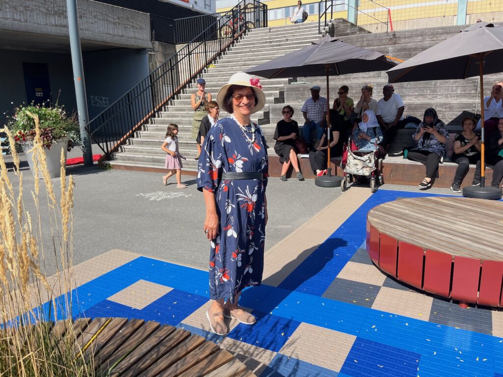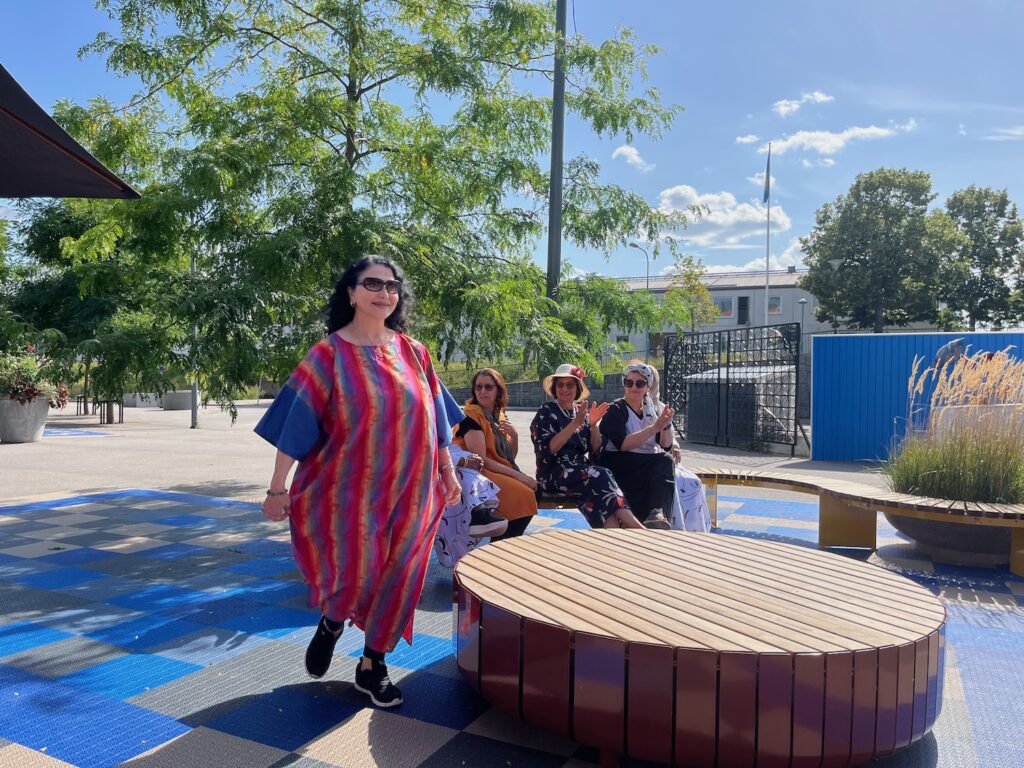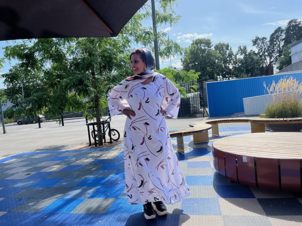 – Ja, idag är jag jätteglad. Det har länge varit min dröm att göra en modevisning, säger Muna Alyaqoobi, som är ansvarig för Konstverandan.