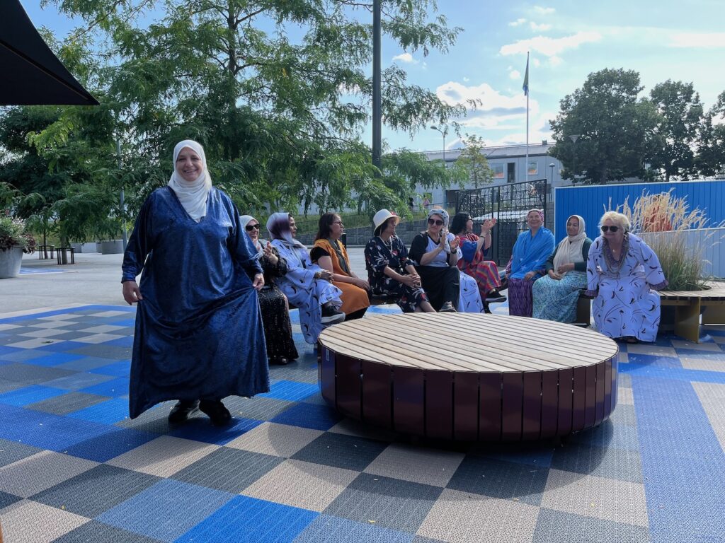 Mer än 20 kvinnor har deltagit på Konstverandan, men inte riktigt alla kunde vara med på avslutningens catwalk. En som varit med och som lärt sig sy är Bahtinor Abudureyimu.