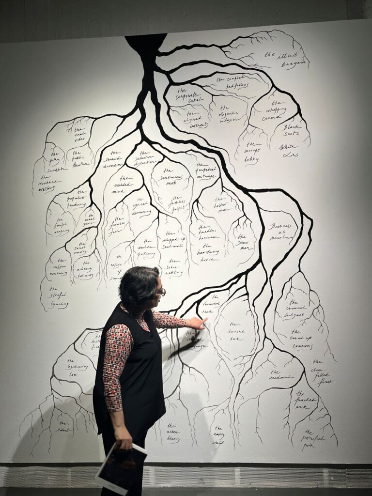 I “Pulp IV, Unbound and Abridged” får man en unik inblick i konstnärens egen skapandeprocess. Med hjälp av akvarell och tush på papper, text, foto, handvävd textil och anteckningsböcker indränkta i bläck gestaltas arbetet från idé till verklighet med nästa kommande bok i serien. I själva verket är det så hon brukar göra i sitt skapande, och som hon hänvisar till som en uttrycksform längre än skrivkonsten. Det som hon under visningen benämner kulturell kunskap, eller icke-mänsklig kunskap, besitts av alla levande varelser. För mig är den insikten om kunskap, som något nästan transcendent och pågående, den mest intressanta delen och bidraget.