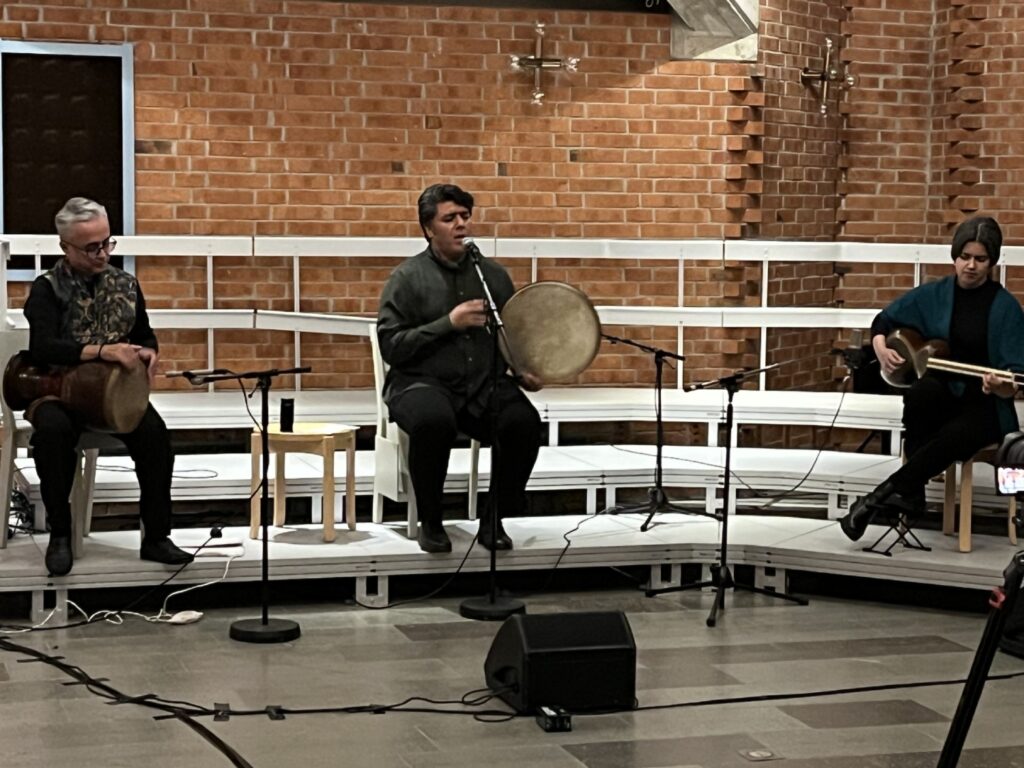 Med viftande flaggor och när vi kom utomhus tändes eldar när Teater Slâva ledde åskådarna till kvällens sista stopp, Kista kyrka. Vid ankomsten dit upptäcktes att det redan var i stort sett fullsatt av de som tagit plats för att lyssna på Zarbi Khani, som är en traditionell rytmisk sång med ursprung från Iran. Sångaren Mehdi Emami, känd för sin mästerliga röstteknik, uppträdde tillsammans med tar-virtuosen Saina Zamanian och tombakspelaren Hiwa Khatib.