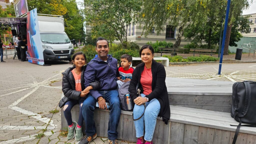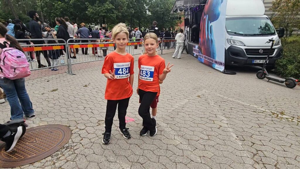 400-metersloppet för startgrupp mini inleddes med en uppvärmning med dans och hopp. En barnfamilj som var tidigt på plats var väldigt ivriga. Syskonen Shefali och Gustav, åtta och fyra år, skulle båda två tävla i loppet. Familjen är inte från Järva utan har åkt hela vägen från Högdalen för att vara med och springa.