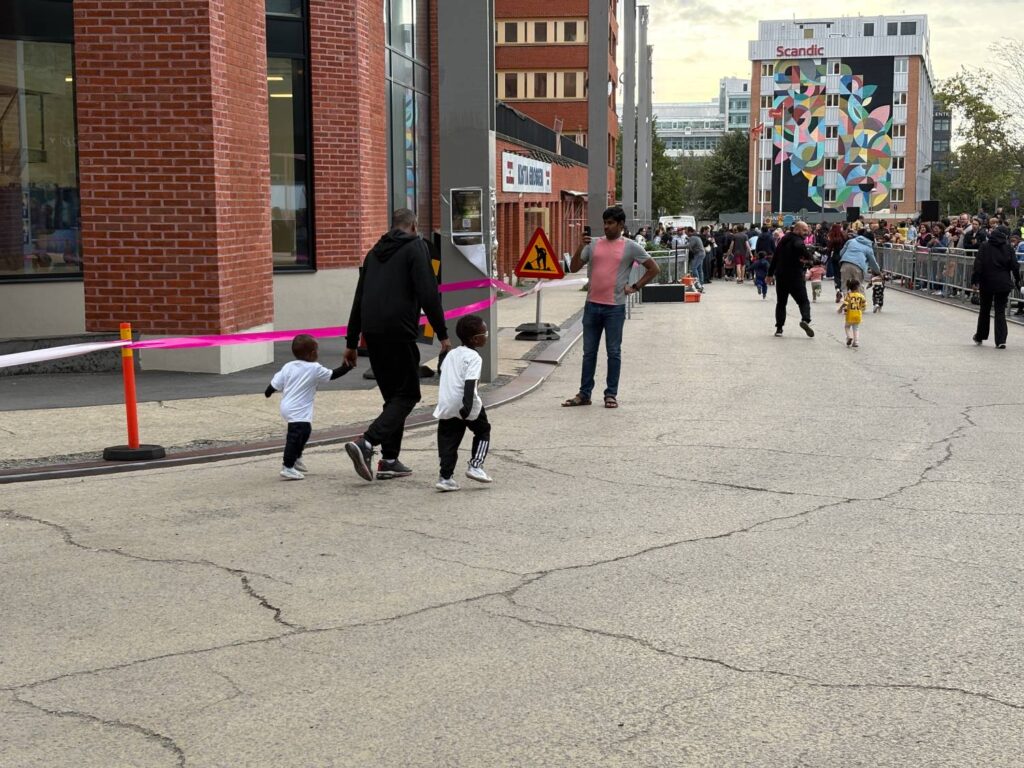 Både mammor, pappor och äldre syskon sprang tillsammans med de yngsta i loppet. En pappa bar sin dotter i famnen redan en bit in i loppet fram till de sista stegen mot mållinjen.