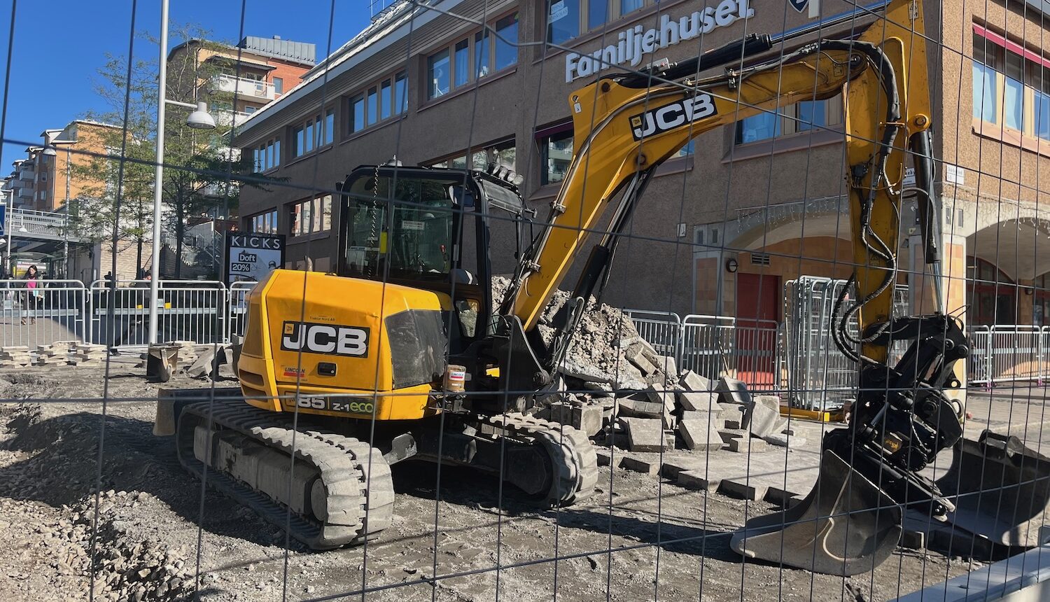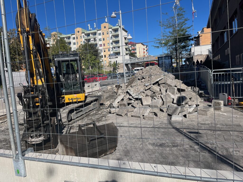 – Vi ska lägga nya gatstenar, säger en av arbetarna som står innanför stängslet.