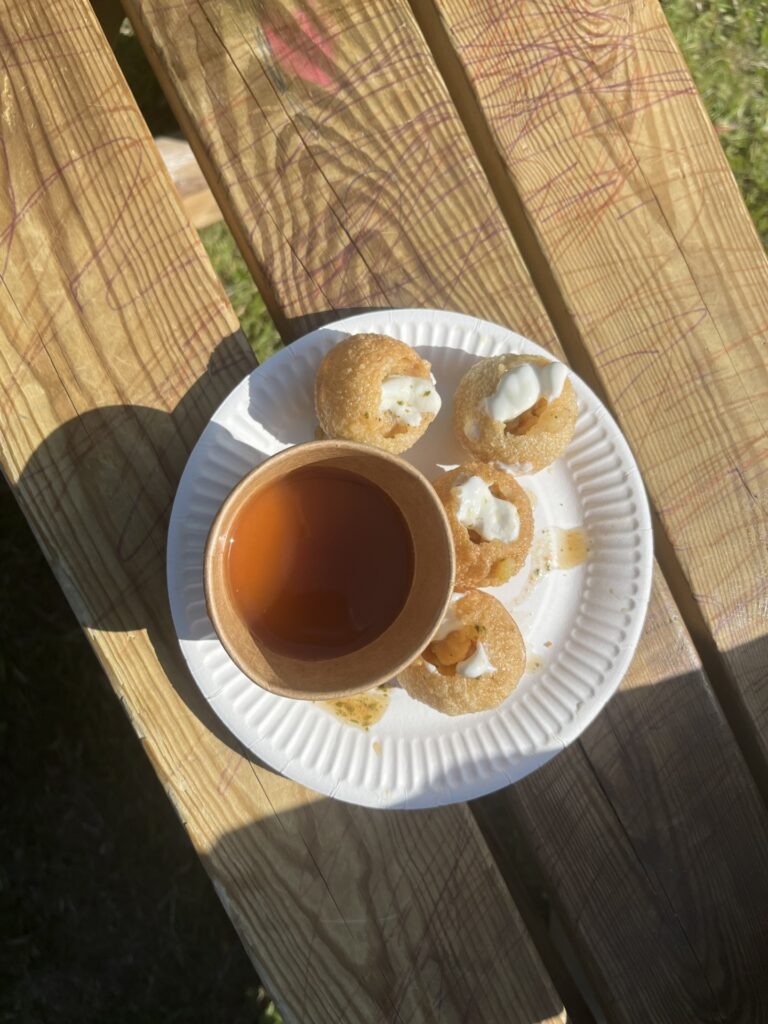 Köerna ringlade långa till de olika foodtrucks som fanns på plats. Det gick att köpa till exempel grillspett och dahi puri, en liten rund boll som fylls med bland annat bönor och potatis.