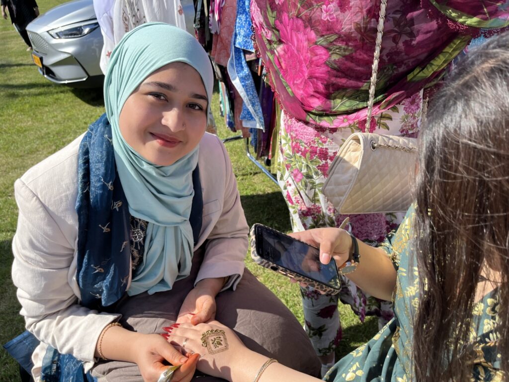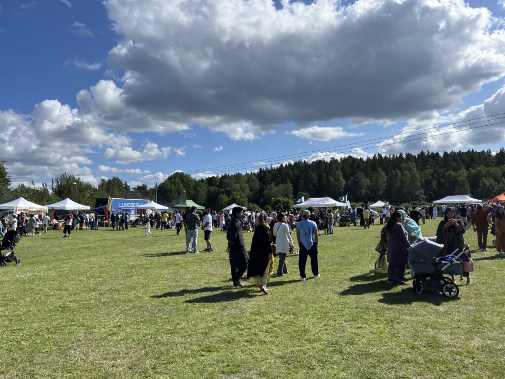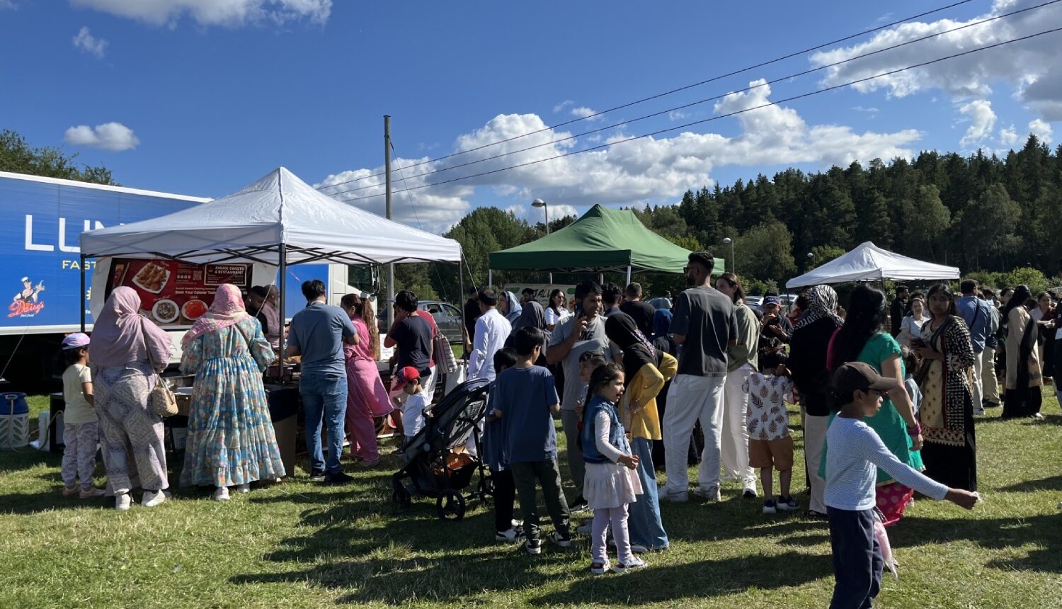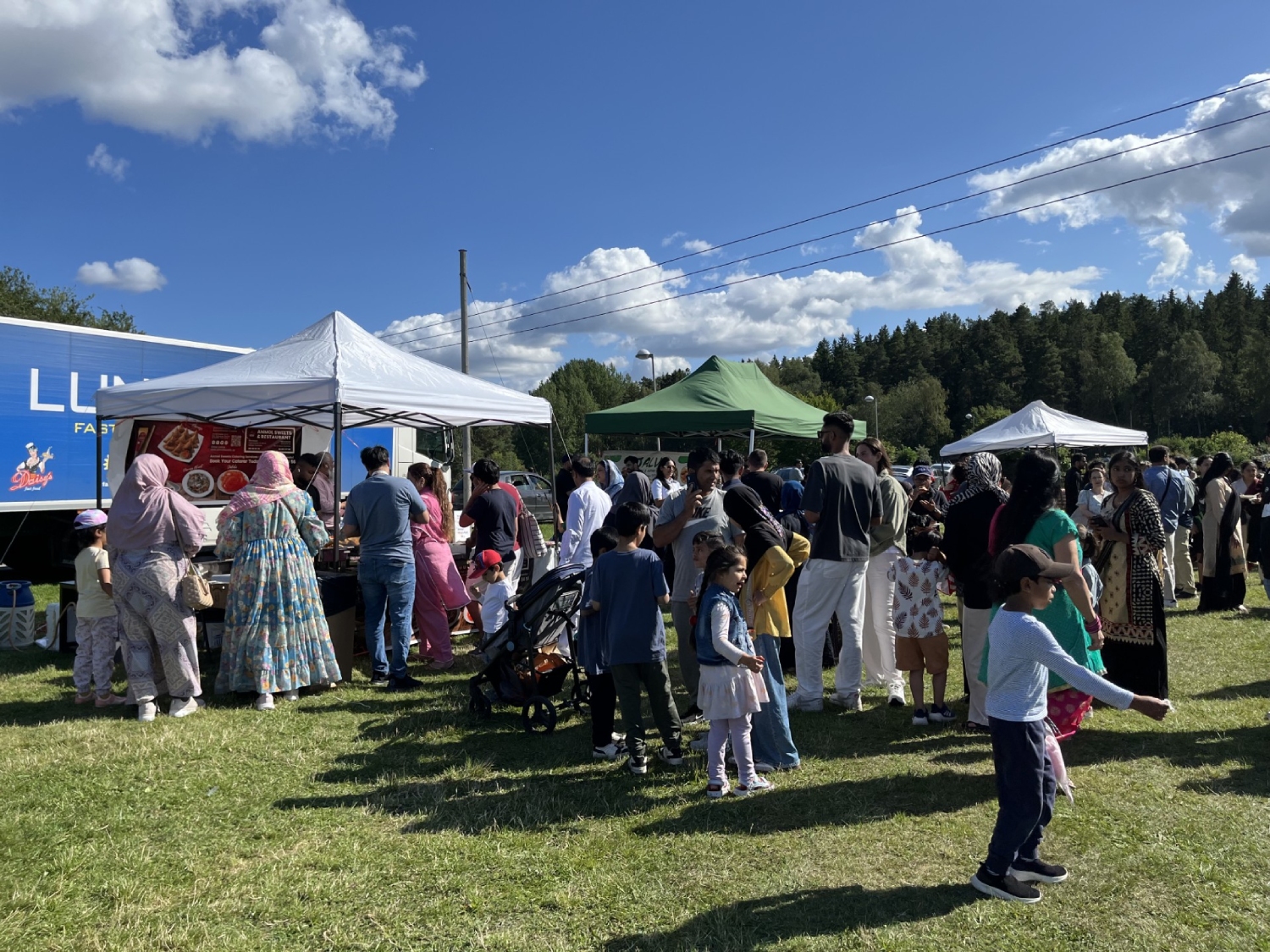 Precis som förra året hade många människor samlats på ängen nedanför Akalla by. Där fanns försäljare av kläder, foodtrucks med mat och sötsaker och möjlighet att få händerna dekorerade med henna. Mycket av den mat som såldes var pakistanska specialiteter.