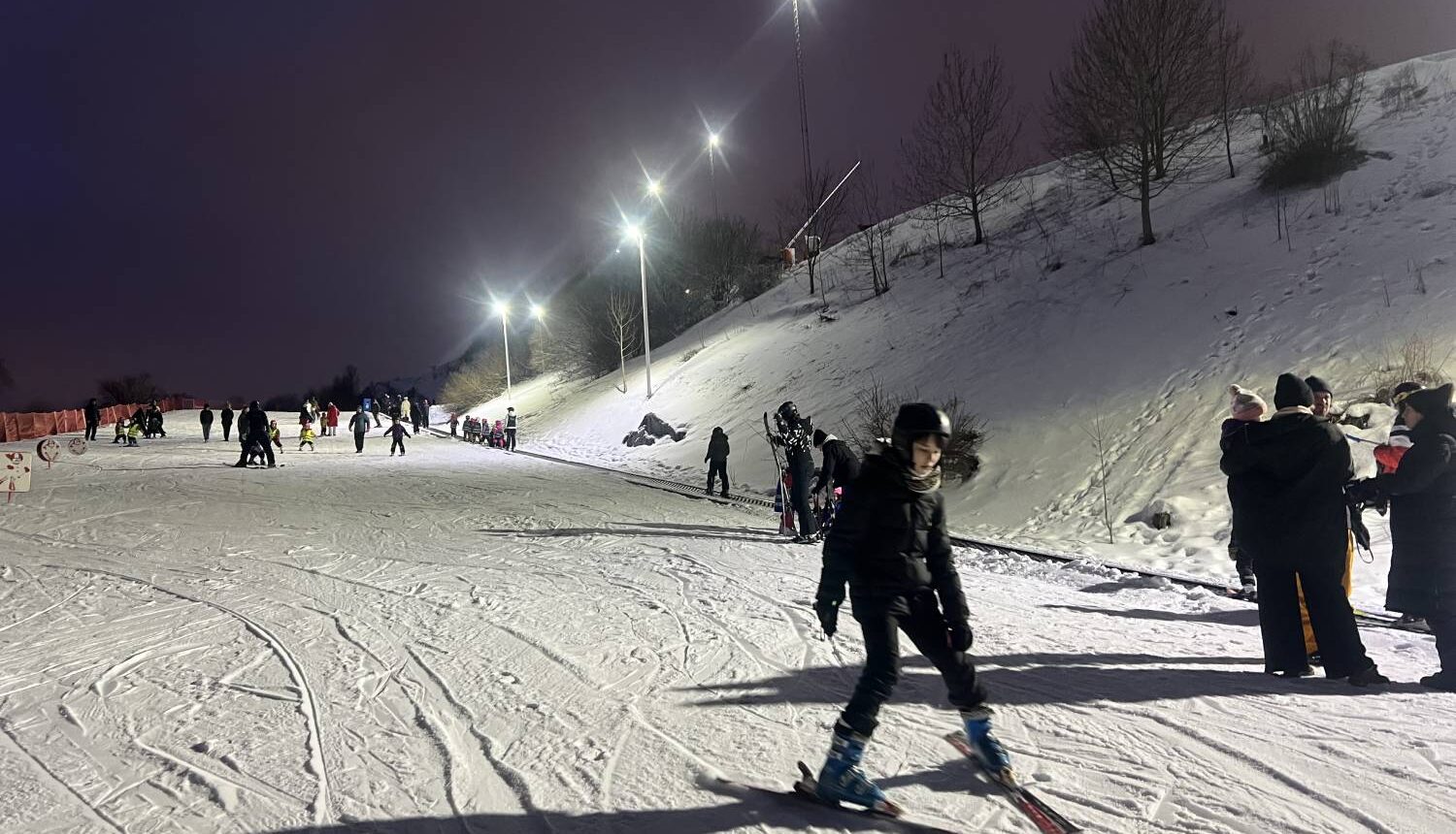 På tisdagen var många barn på plats i Hammarbybacken och Elias var ett av dem. Flera andra slalomskolor samsades med Rinkeby Run om platsen och överallt var det barn på skidor.