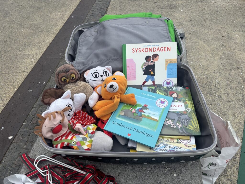 Mittemot målarbordet stod Läsfrämjarinstitutet (LFI) för att hålla i en högläsning på torget. LFI har tidigare genomfört interaktiva teaterläsningar i parkleken Rinken och i Tensta. Genom åren har de byggt upp en trogen publik.