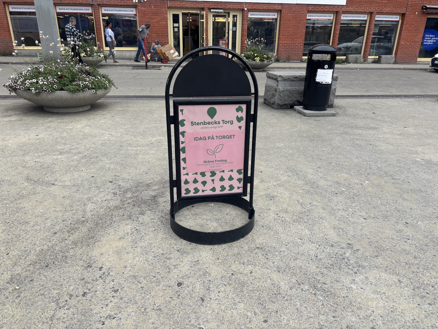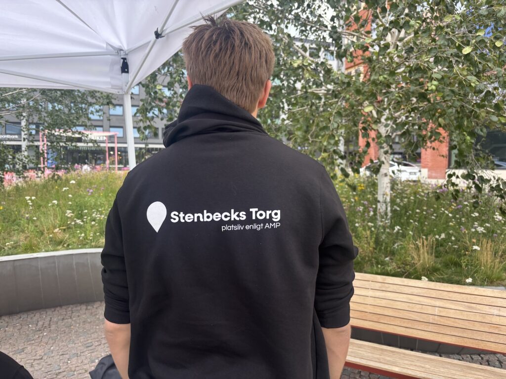Det kyliga och regniga vädret gjorde att färre hittade till torget. Men platsen har fått ett litet lyft med nya sittplatser och gemenskapsfrämjande lekar. En stor förändring från det tidigare tomma torget.
