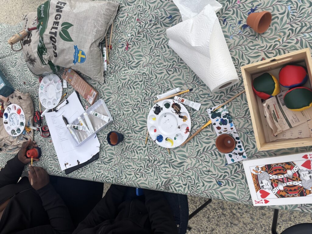 På fredagen fick besökarna måla egna krukor och plantera frön. På plats fanns tre sommarjobbare, som skulle medverka i aktiviteterna fram till sommarens slut. Programmet återkommer varje vecka, så det finns gott om chanser att vara med, sade en sommarjobbare.