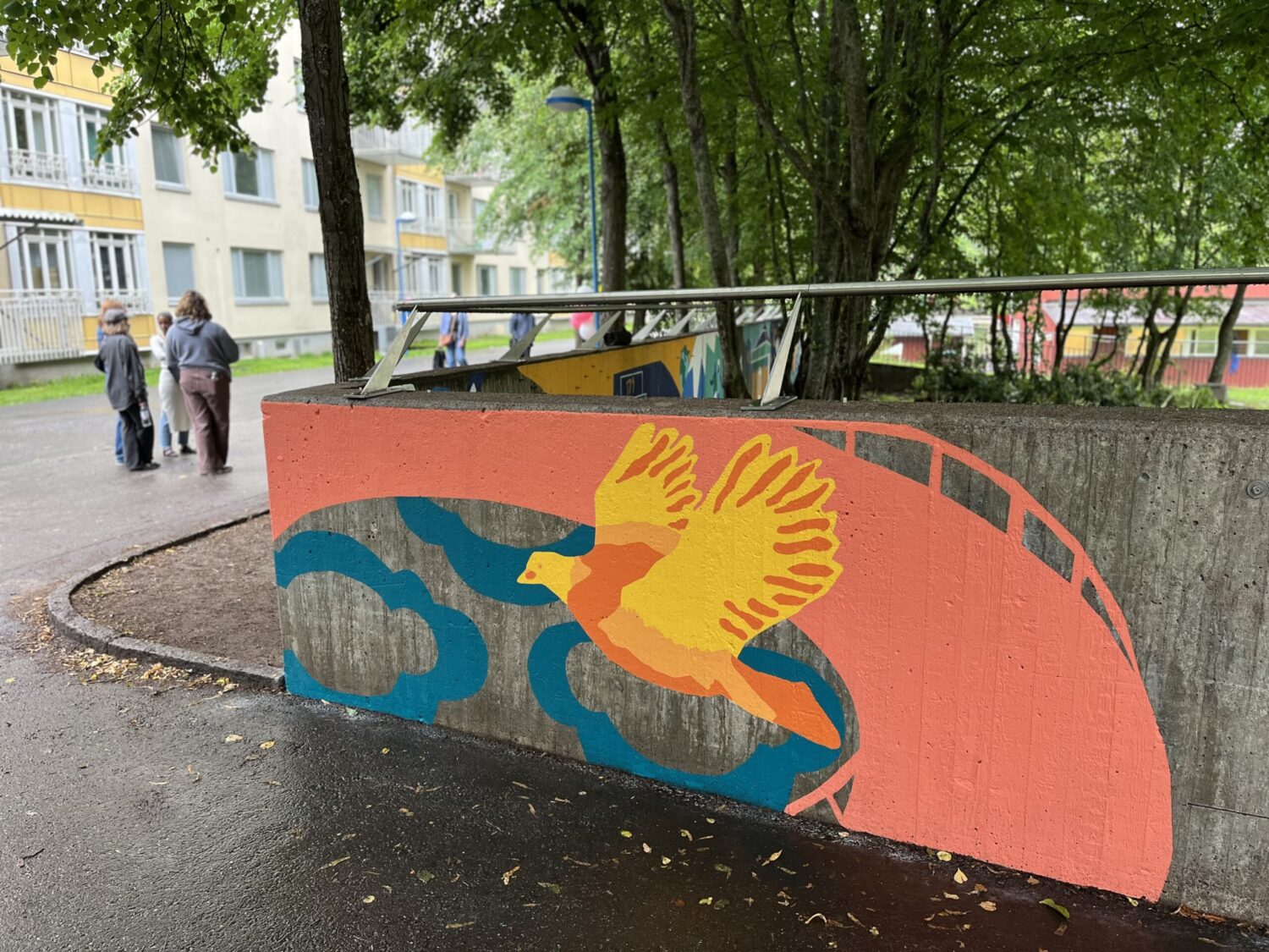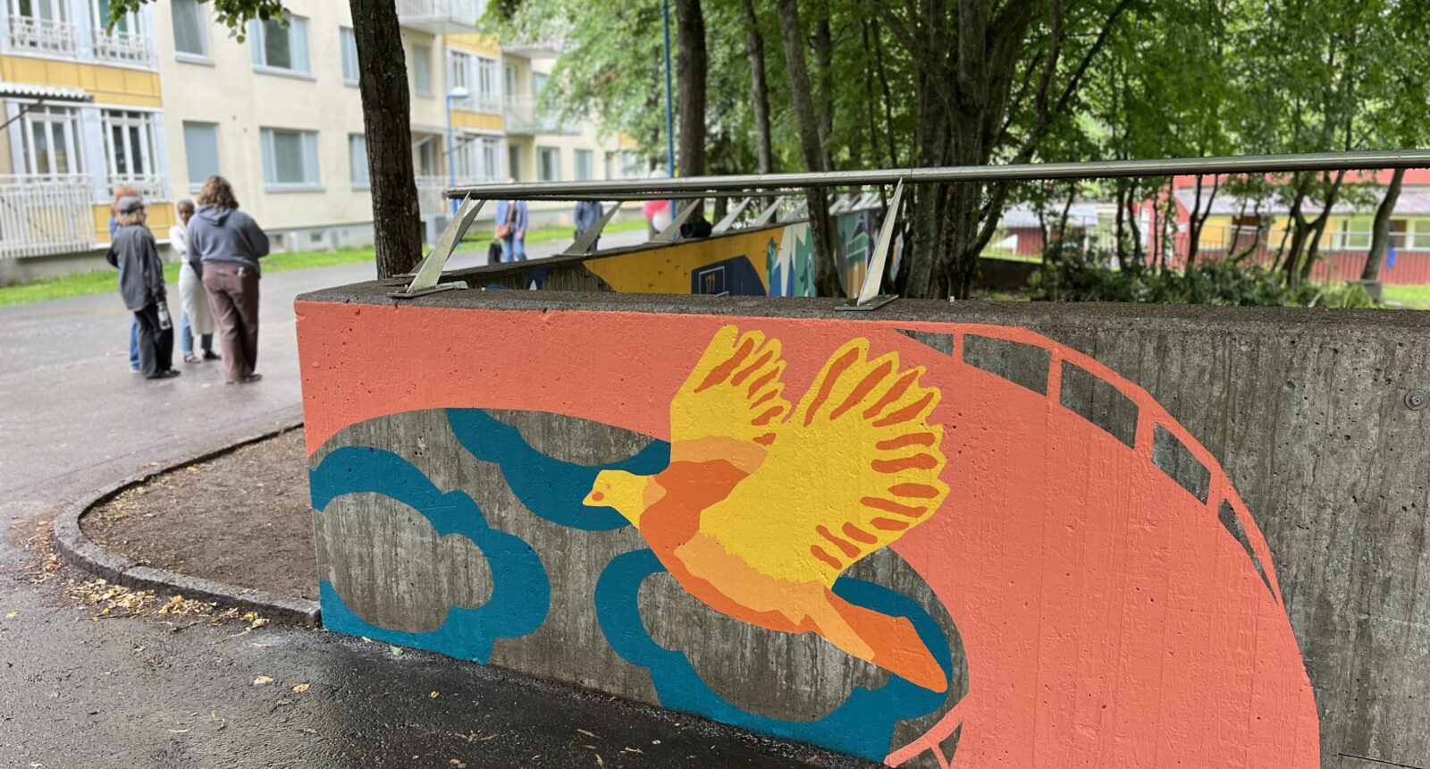 Själva processen med muralmålning har liksom mosaiken nere vid Enbacksgången varit utmanande, förklarade tjejerna. Men eftersom målningen gjordes under öppen himmel fick de göra om det sista när regnet kom. Det sista färglagrets hade lagts samma dag