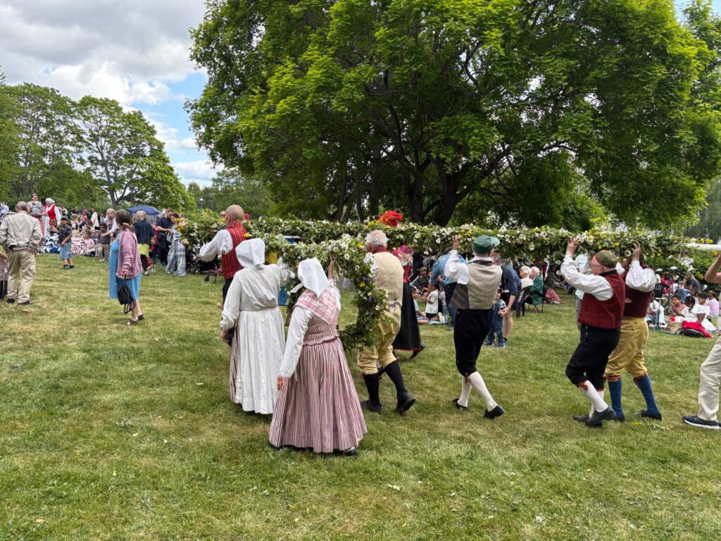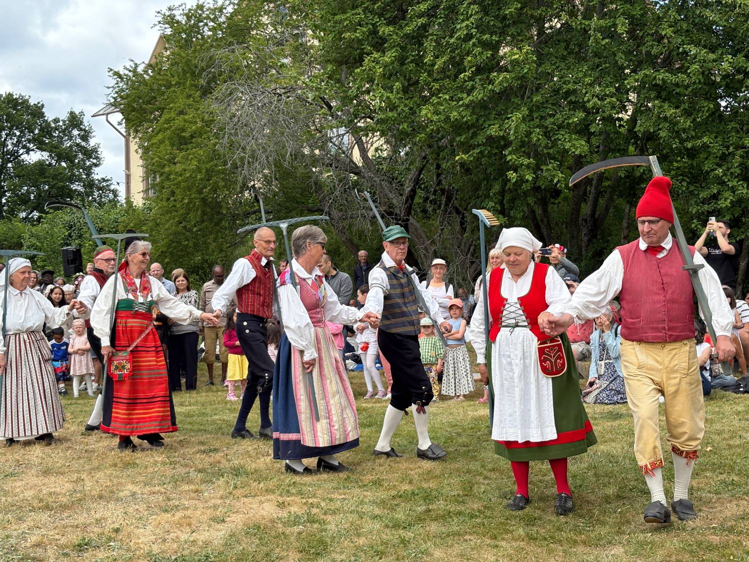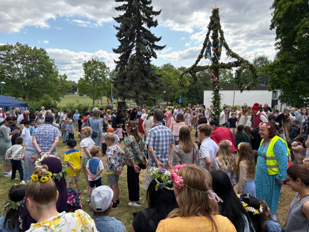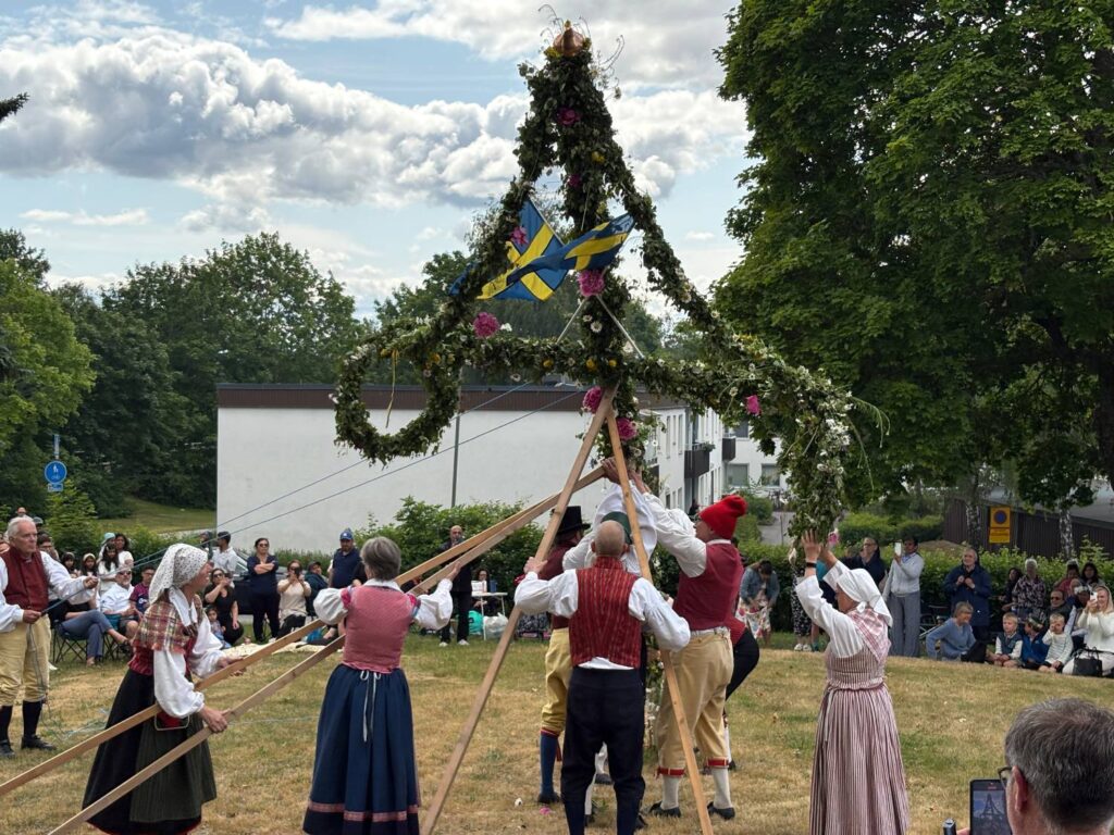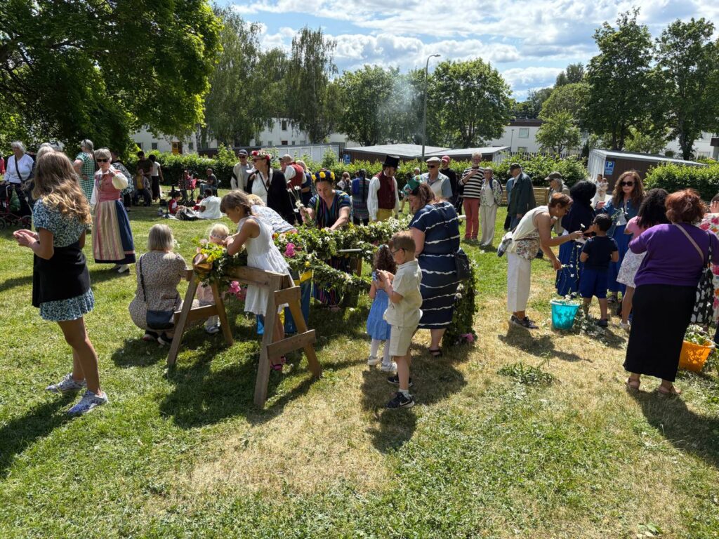 Midsommaraftonen firades traditionsenligt med dans kring midsommarstången, lekar och fika. Spånga folkdansgille bjöd firande järvabor på en uppvisning av både vals och schottis.