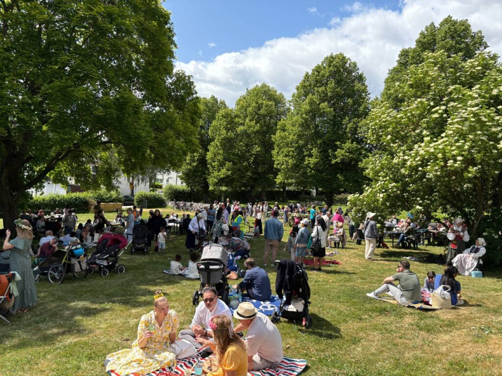 Vid Spånga kyrka dukade familjer upp picknick, barnen lekte lekar och Spånga folkdansgille bjöd på flera olika danser, bland annat en finsk skördedans, där männen slog gräs med lie och kvinnorna räfsade upp det nyslagna gräset med sina räfsor.