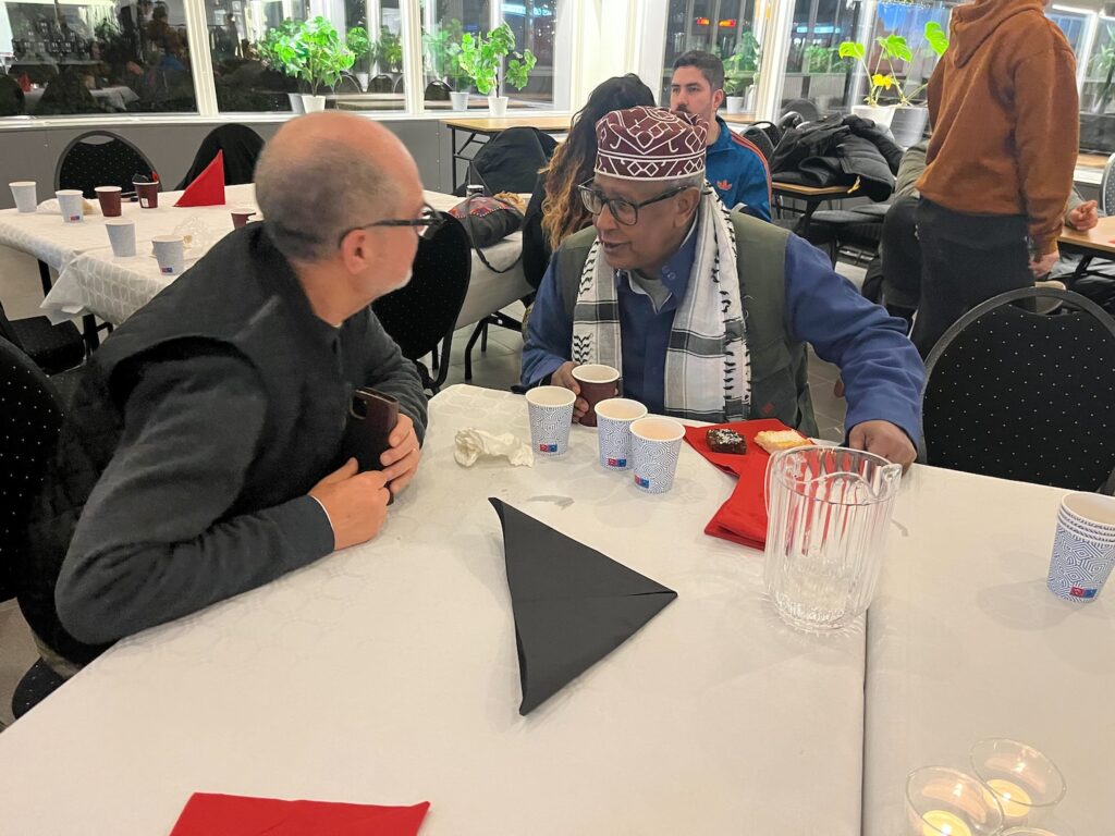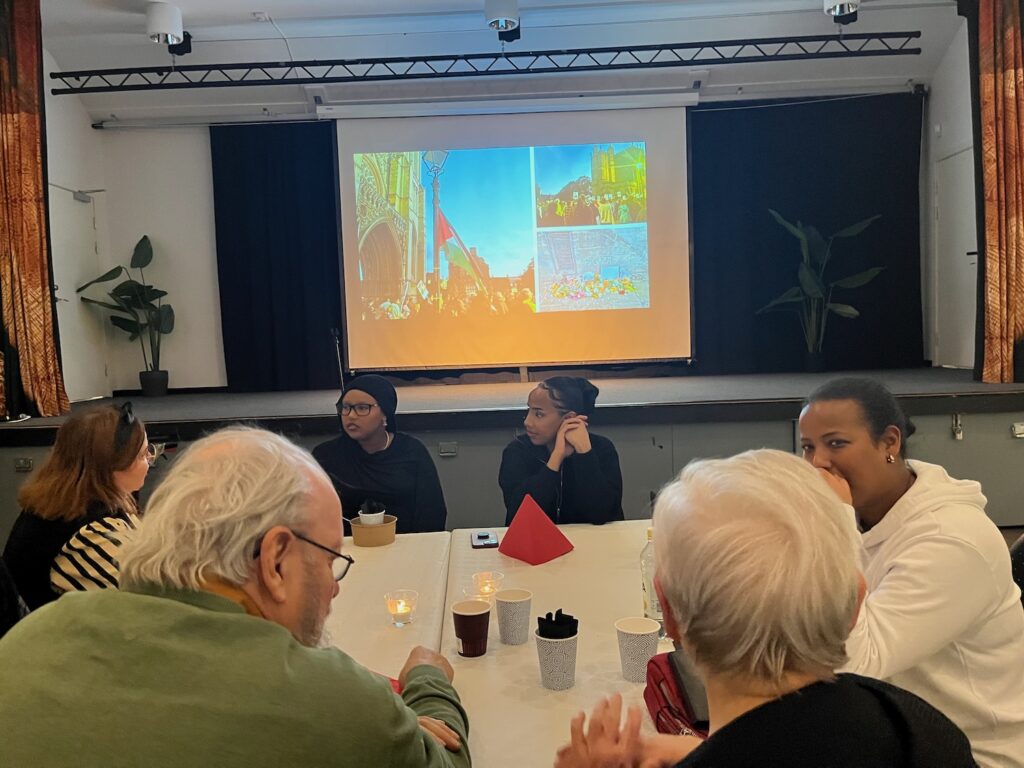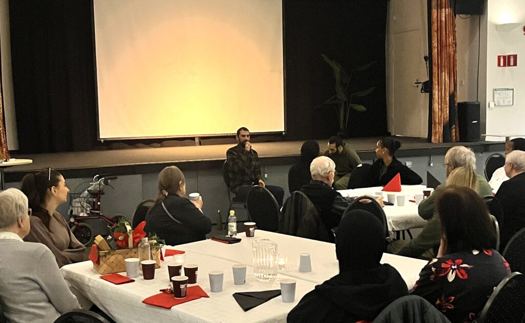 När kaffet och kakorna var serverade avslutades kvällen med ett akustiskt set av Husbys egen livepoet och ordkonstnär, Badji, backad av ingen mindre än Rojen på cajón.