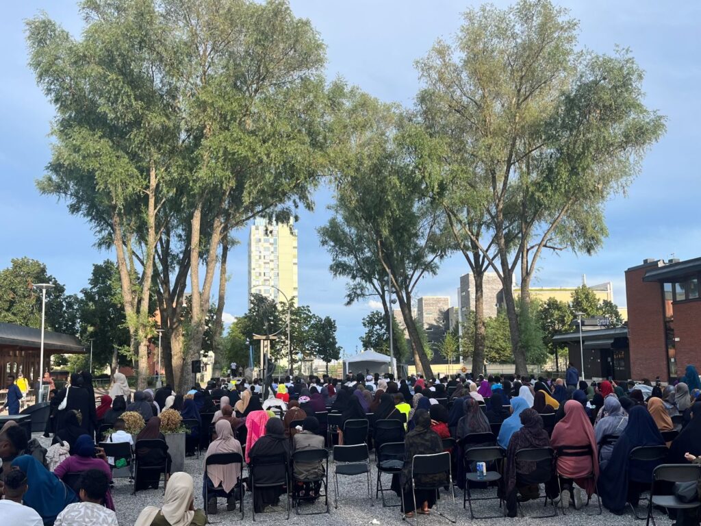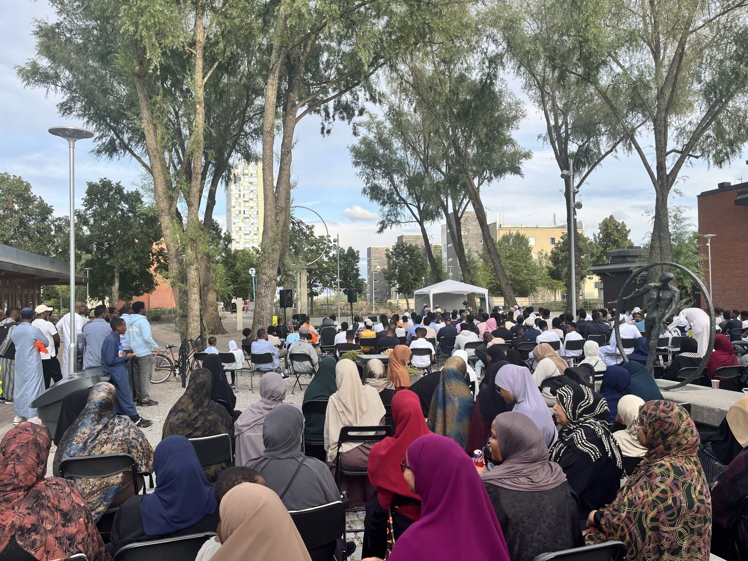 På plats i Pilparken stod klaffstolar uppställde i ett tjugotal rader. Ett högtalarsystem placerat vid ett vitt partytält längs med kortsidan mot Tensta centrum utgjorde evenemangets mittpunkt eftersom de tillfälliga lokalerna på Tensta Träff blivit för trånga och varma dagen innan.